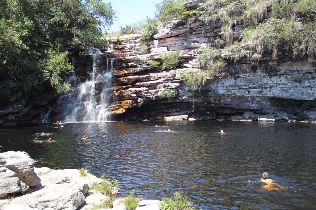 …. schattenspendende Bäume = Fehlanzeige, die wilde Ananas auch nicht wirklich eine Abkühlung. 20 min später sind wir am Eingang des Geländes angekommen. Dort mussten wir uns registrieren und uns schriftlich einverstanden erklären, dass Wer-Auch-Immer für uns keine Haftung usw. übernimmt. Bis 12 Uhr hatten wir Zeit die beiden kleinen Wasserfälle zu besuchen. Entweder hatte die Maßnahme etwas mit ökologischen Tourismus zu tun, oder ab 12 sollten dort die kommerziellen Busladungen ausgeschüttet werden.